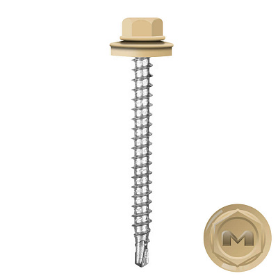 Кровельные саморезы Daxmer (Даксмер) по дереву цветом RAL1001 Клен Светлый 4,8*50мм окрашиваются УФ-стойкой полиэфирной порошковой краской. Цинковое антикоррозийное покрытие обеспечивает длительный срок службы саморезов (не менее 25 лет). Специальная металлическая шайба с ЕРDМ - уплотнителем обеспечивает плотное прилегание профилированного металла (кровли) к деревянной обрешетке, а также препятствует попаданию влаги.