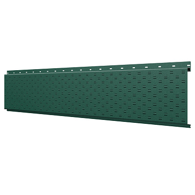Линеарная потолочно-стеновая панель с ПЕРФОРАЦИЕЙ для вентиляции цвет RAL6005 Зеленый Мох Стальной Бархат применяется в качестве софитов для подшивы крыши, наружной и внутренней отделки потолков, стен, фронтонов фасада дома в Астане.